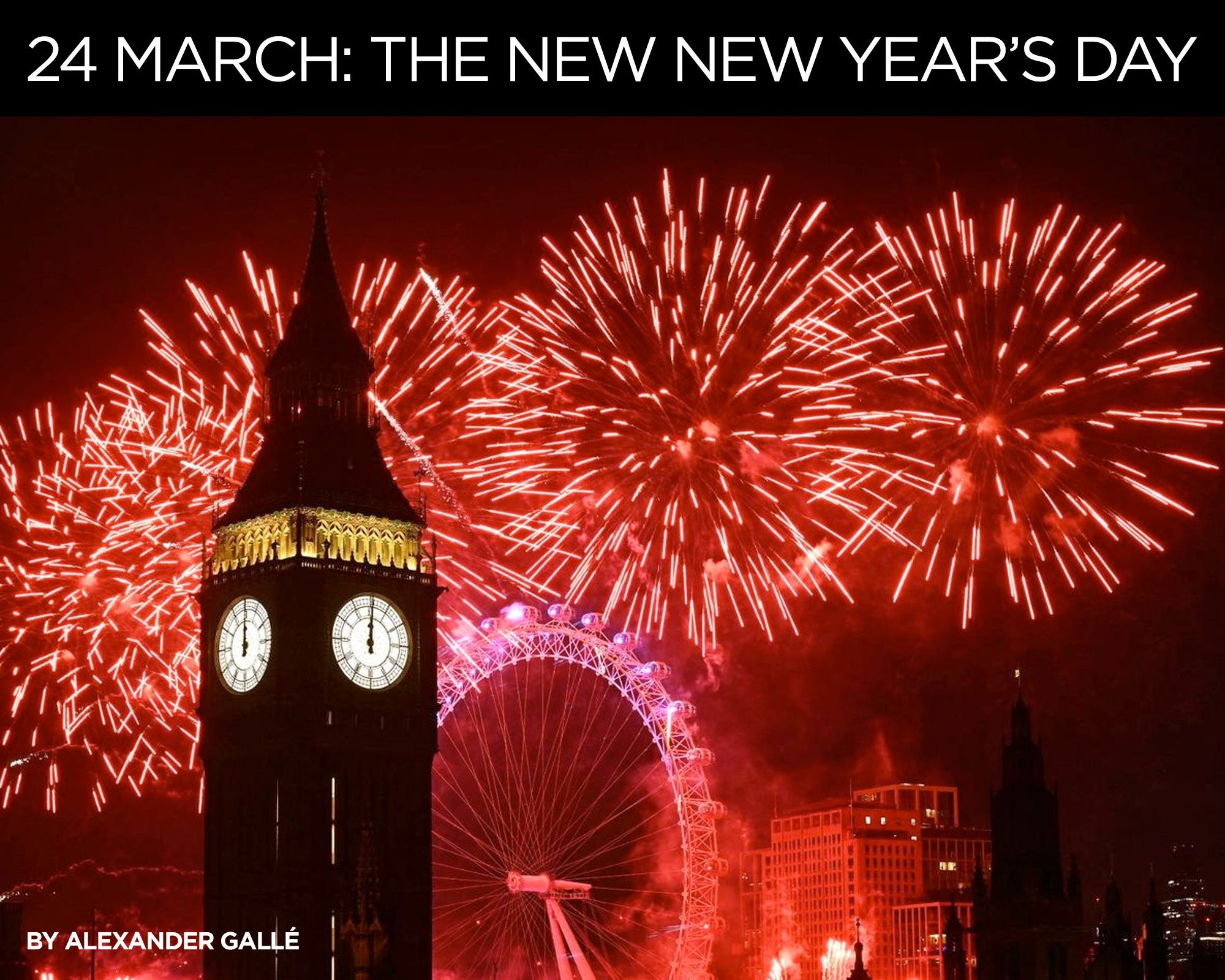 By starting the New Year, not in the winter, but on that most glorious day: 24 March.