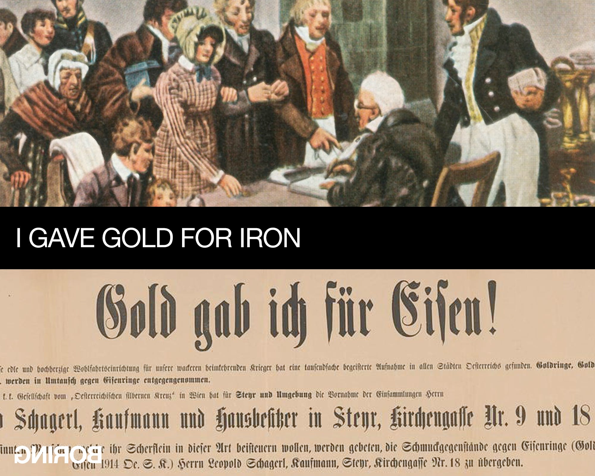 This phenomenon has been repeated a number of times throughout history. In World War I, when Germany started running out of gold to pay for cannons, they issued rings with the same line for people to swap their golden wedding rings.